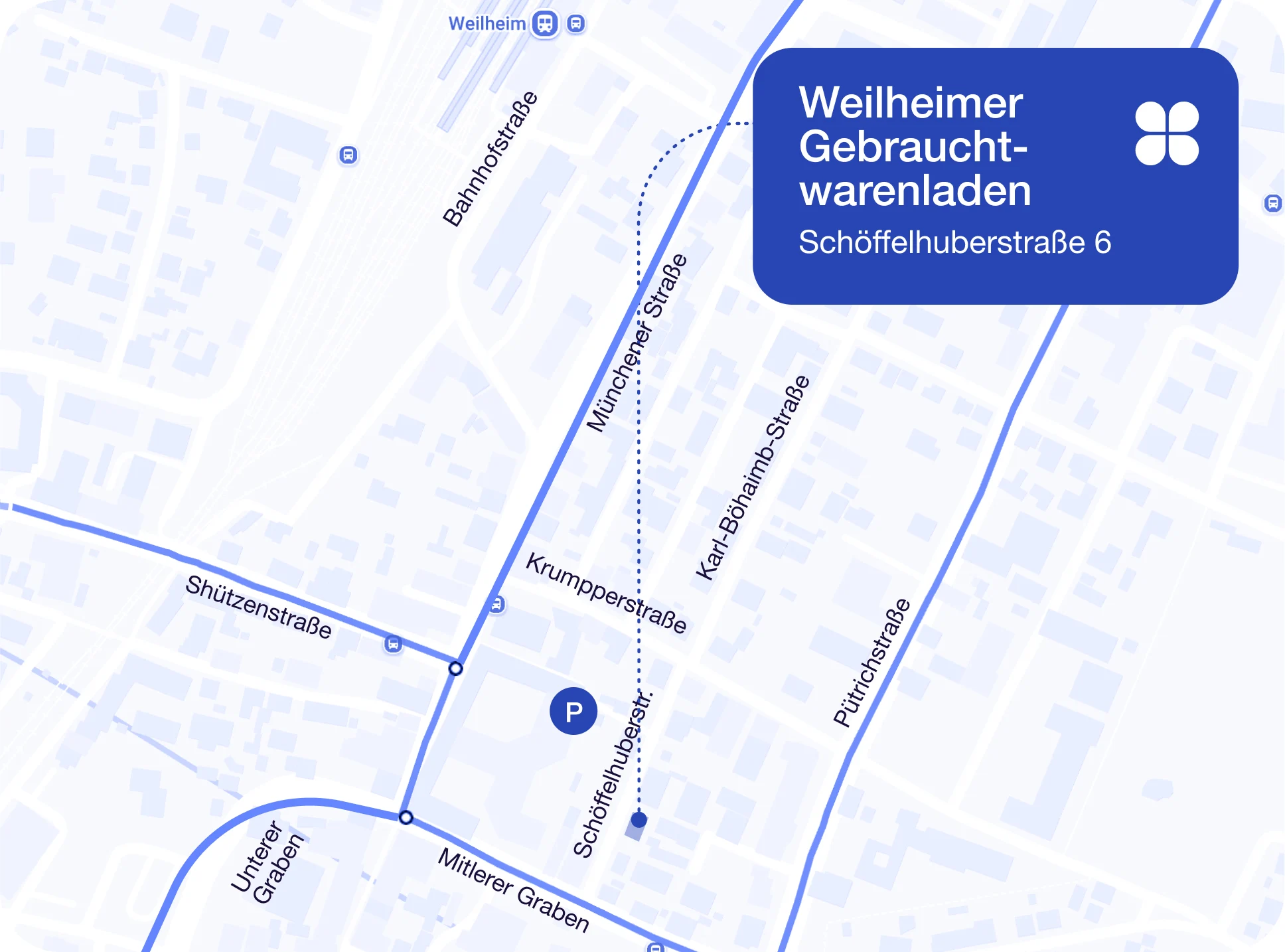 Kommen Sie vorbei und entdecken Sie Secondhand Schätze in Weilheim. Wir sind zu folgenden Zeiten für Sie da: